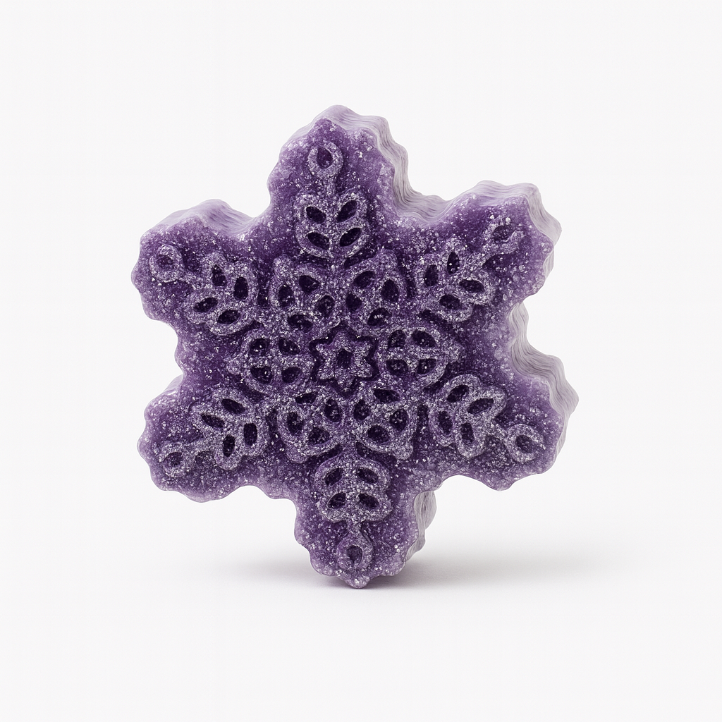 The Frosted Seven Collection features seven handcrafted snowflake wax melts, each in a different color with a shimmering finish. Made in small batches with quality wax and a festive Candy scent, this set adds a colorful touch of winter charm to any space.